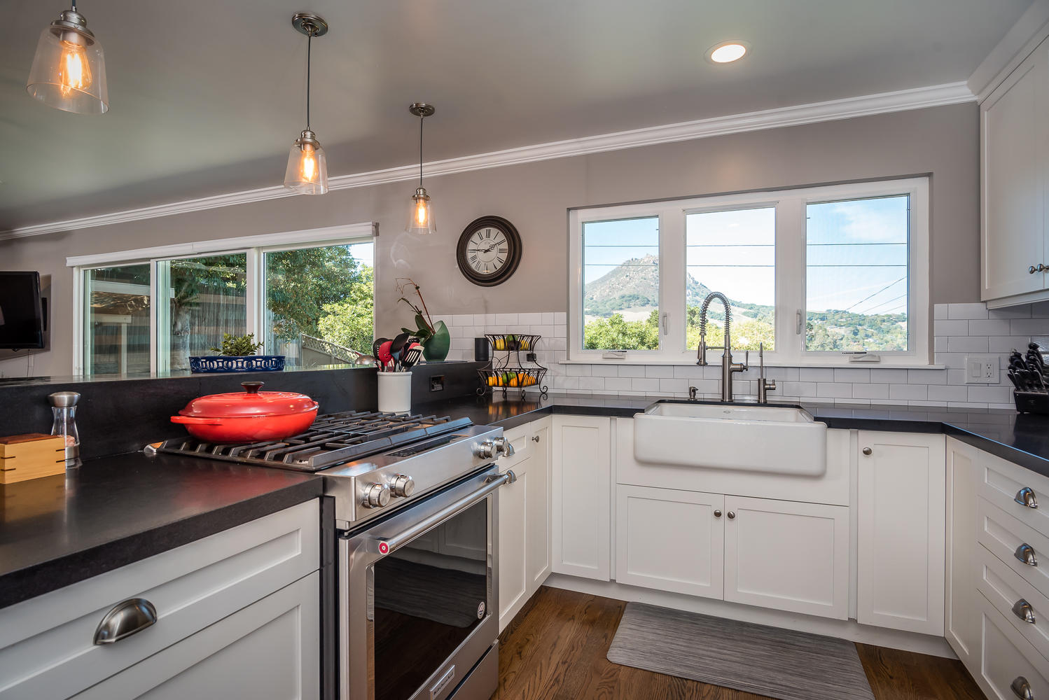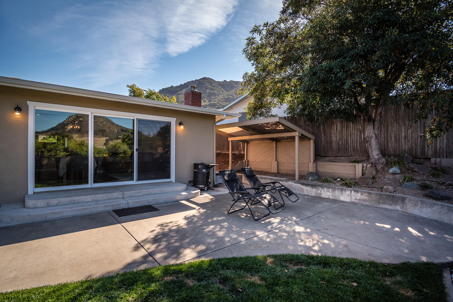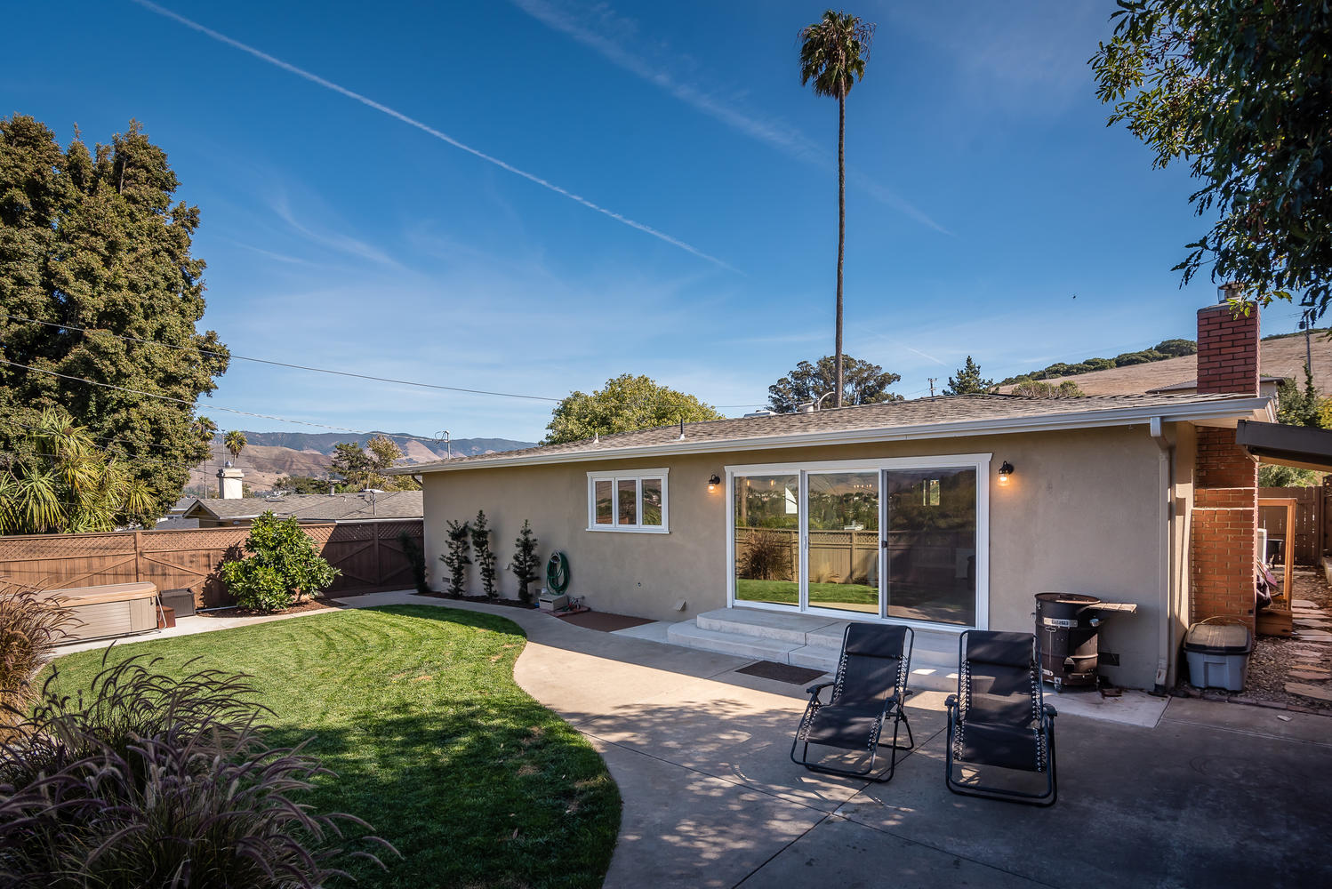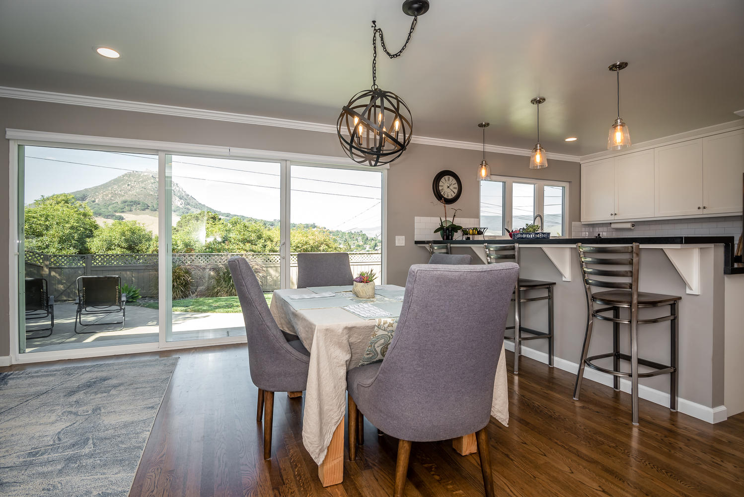 Beautifully remodeled 3 bedroom, 2 bath single level home perched against Cerro San Luis with sweeping views from Bishop Peak to Cal Poly. Great room showcases wood burning fireplace and a wall of glass, framing breathtaking views over the city. Recently remodeled kitchen with soft close custom cabinets, honed Absolute Black granite countertops, KitchenAid stainless steel appliances, and bar area with sink and wine fridge. Open concept floor plan, updated baths, refinished original hardwood floors, crown and baseboard moldings, custom interior doors, ceiling fans in all bedrooms and recessed lighting in living spaces. Peaceful, private fenced backyard features patio, lawn area, raised garden bed and avocado tree. Enjoy views of Cerro San Luis and Bishop Peak from relaxing spa. Additional amenities include a solar energy system, attached two car garage, professional landscaping and new exterior paint and trim. Located in desirable neighborhood in Bishop’s Peak Elementary school district near shopping, restaurants, parks, hiking and Cal Poly. A must see to truly experience this beautiful home and gem of a location!