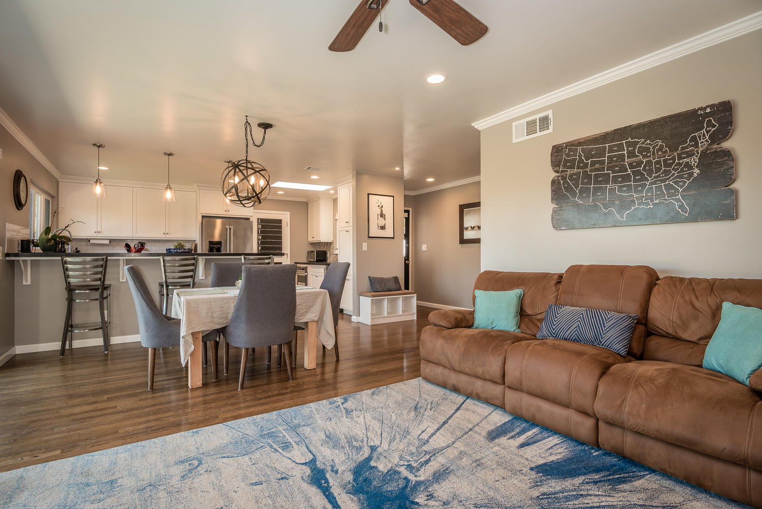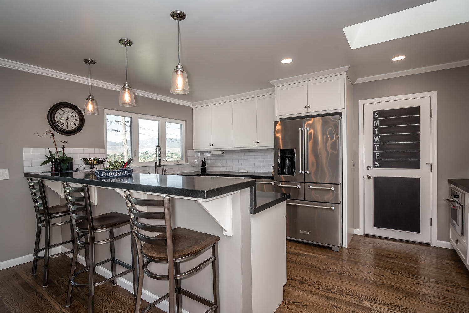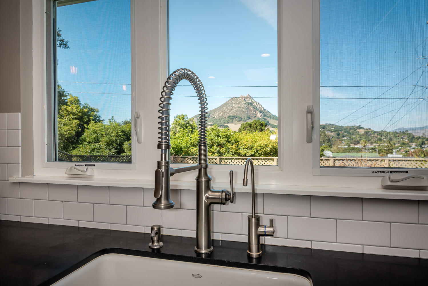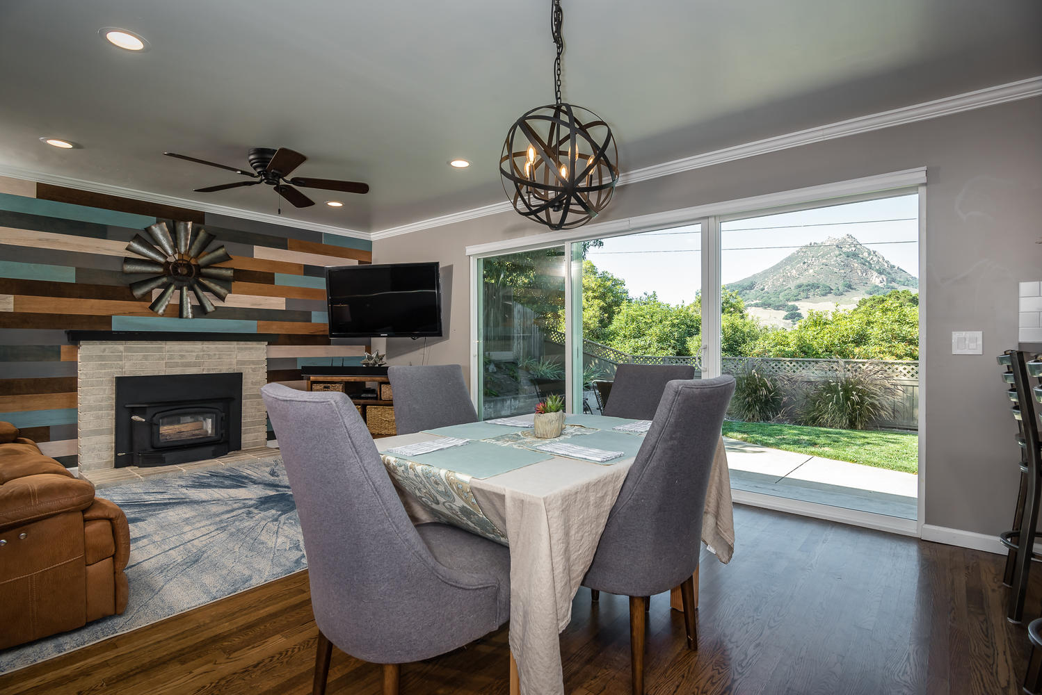 Beautifully remodeled 3 bedroom, 2 bath single level home perched against Cerro San Luis with sweeping views from Bishop Peak to Cal Poly. Great room showcases wood burning fireplace and a wall of glass, framing breathtaking views over the city. Recently remodeled kitchen with soft close custom cabinets, honed Absolute Black granite countertops, KitchenAid stainless steel appliances, and bar area with sink and wine fridge. Open concept floor plan, updated baths, refinished original hardwood floors, crown and baseboard moldings, custom interior doors, ceiling fans in all bedrooms and recessed lighting in living spaces. Peaceful, private fenced backyard features patio, lawn area, raised garden bed and avocado tree. Enjoy views of Cerro San Luis and Bishop Peak from relaxing spa. Additional amenities include a solar energy system, attached two car garage, professional landscaping and new exterior paint and trim. Located in desirable neighborhood in Bishop’s Peak Elementary school district near shopping, restaurants, parks, hiking and Cal Poly. A must see to truly experience this beautiful home and gem of a location!