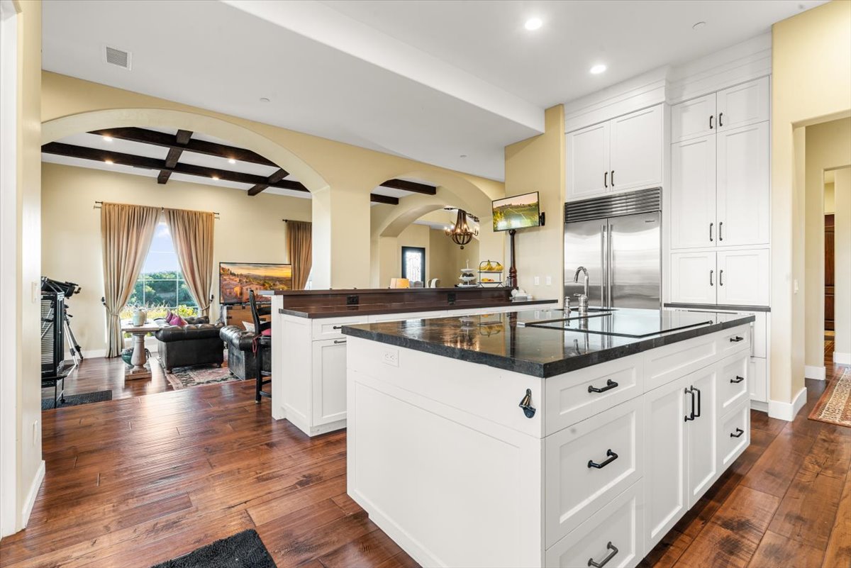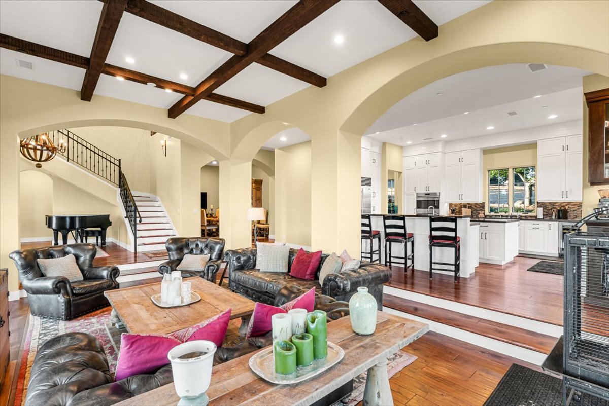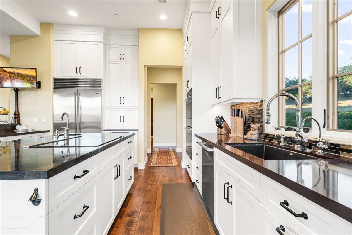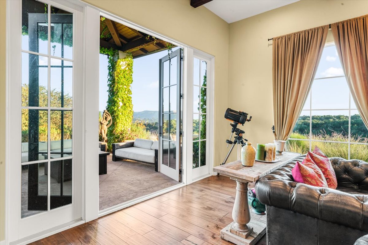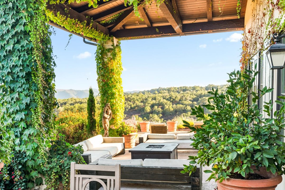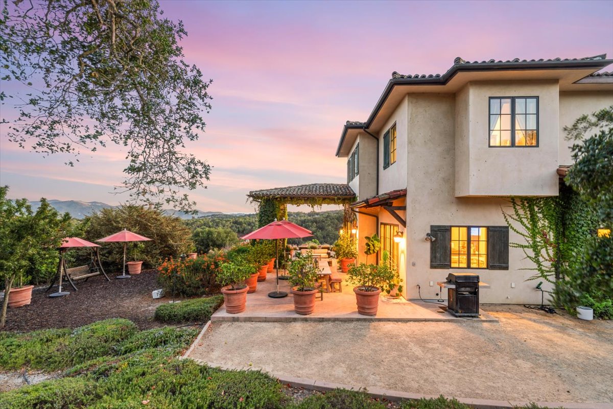 Set near the crest of the prestigious, gated community of Monte Sereno Estates, this refined custom residence showcases sweeping, unobstructed views of the rolling hills and valleys. Completed in 2015, the home was designed to embrace both everyday comfort and effortless entertaining, with seamless indoor-outdoor living at its heart. Step inside the impressive foyer, where soaring two-story ceilings set the tone for the light-filled, open floor plan. Expansive windows and cathedral ceilings invite natural light throughout, highlighting timeless architectural details like arched passageways, wrought iron accents, exposed wood beams, and rich wood floors. The gourmet kitchen is a centerpiece, featuring abundant custom cabinetry, extensive granite counters, high-end appliances by SubZero, Wolf, and Miele, plus a spacious pantry designed for the modern chef. The kitchen and living spaces flow to a vast outdoor space with covered patio, perfectly oriented for lounging or entertaining against a backdrop of breathtaking vistas. Four spacious bedrooms, each with its own en-suite bath, provide comfort and privacy, while a dedicated office offers flexibility for work or study. The primary suite is a true retreat, complete with a spa-inspired bath featuring dual vanities, a large walk-in shower, and a clawfoot soaking tub with views of open space. Sitting on 1.4 usable acres, the property is enhanced by Magnolias and Ficus trees for added privacy, complemented by vibrant bougainvillea and mature olive trees. Additional features include a newer AC unit, all solid-core doors, and an oversized 3-car garage that is fully finished with epoxy flooring. Offering more than 3,800 sq. ft. of refined living, this remarkable home blends elegance and warmth in one of the area’s most desirable locations in Monte Sereno. The gated community proudly holds a Firewise certification, reflecting its commitment to wildfire safety through proactive vegetation management and community-wide preparedness. All of this is located just 12 minutes to downtown San Luis Obispo and 7 minutes to the Village of Arroyo Grande.